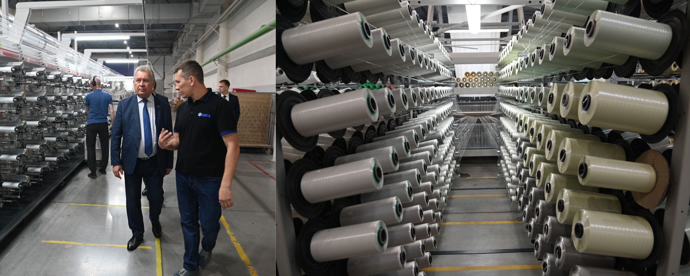 Гости осмотрели основные производственные цеха, где смогли вживую увидеть полный цикл создания продукции — от полипропиленовой нити до готовых изделий: ткани, мешков, БигБэгов, ВВЗ и т. д.