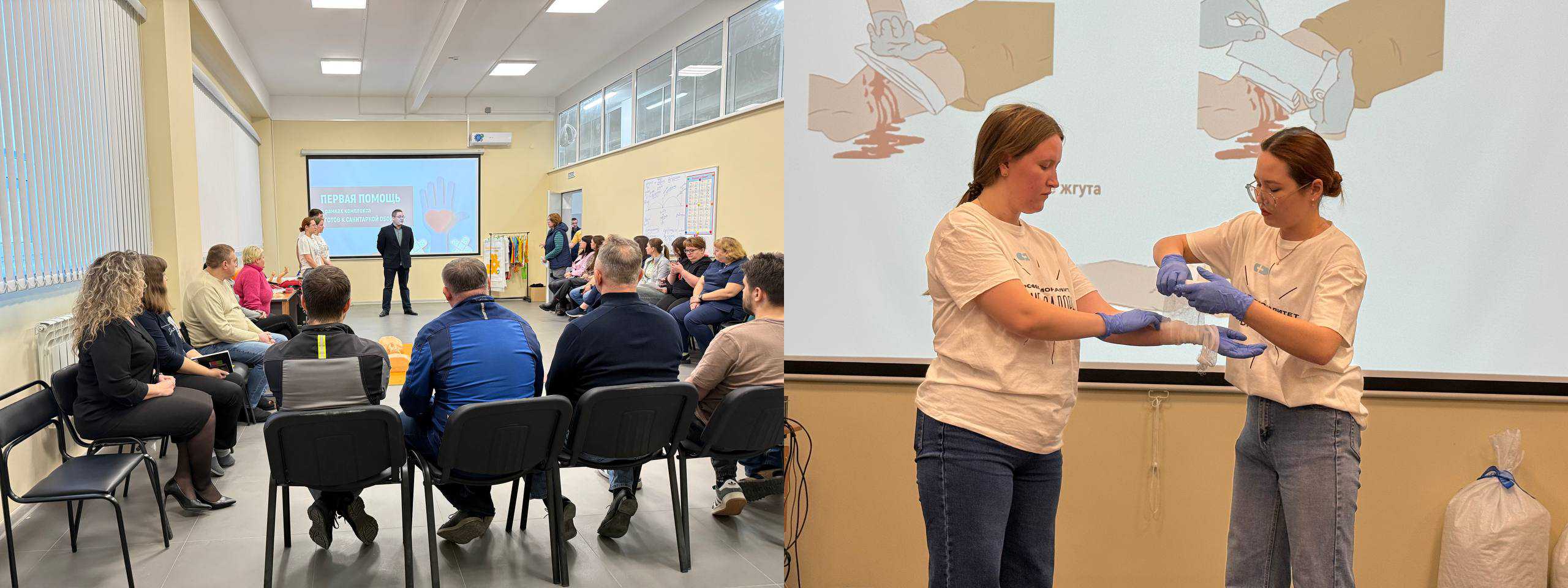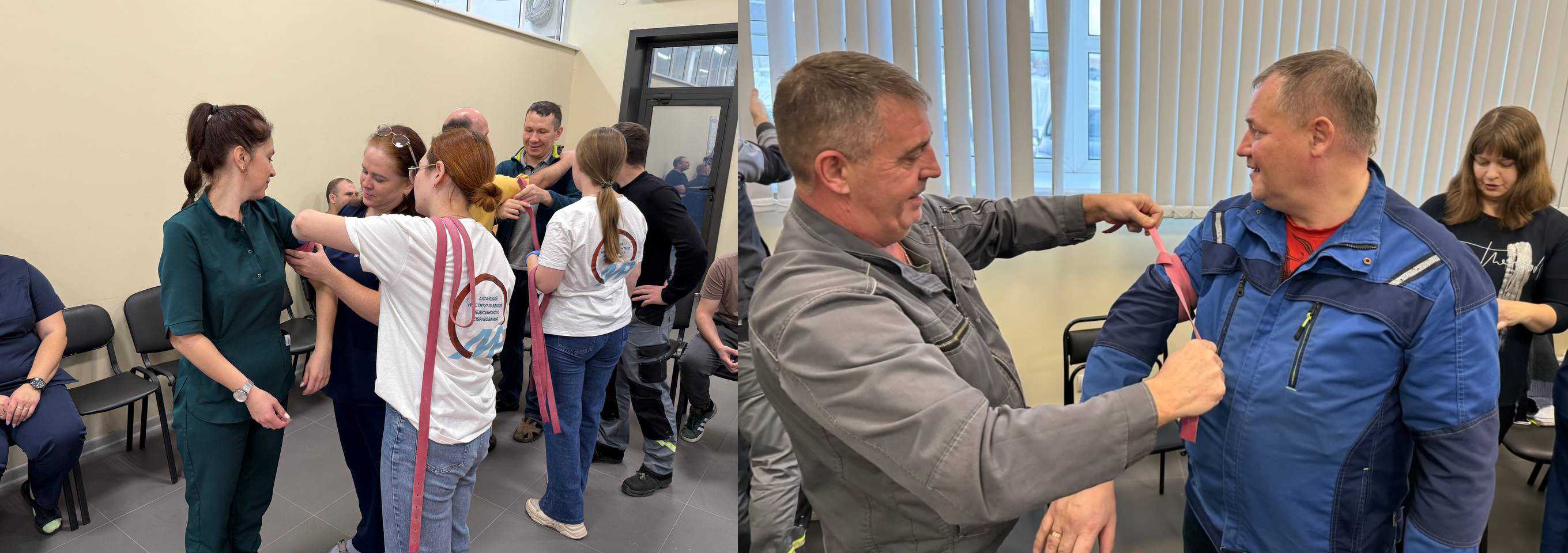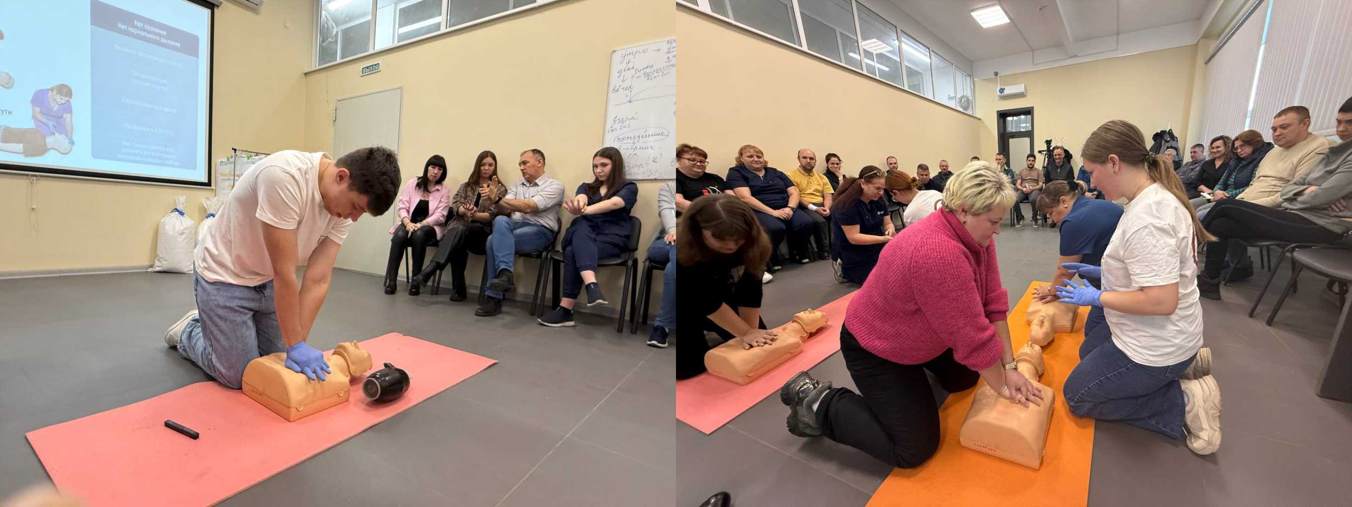 Обучение проводится по всему краю. Инструкторы выезжают на предприятия, в учебные заведения, детские сады и организации, что делает проект максимально удобным для участников. Занятия носят практический характер: каждый отрабатывает приемы на манекенах под руководством опытных медиков